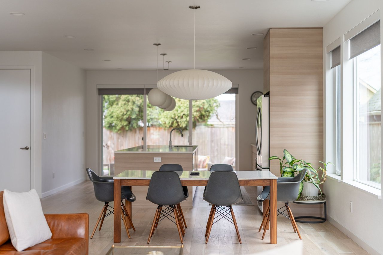 This sophisticated modern residence in Arbor Lodge is defined by exceptional attention to detail and designer-selected finishes. A thoughtfully designed open floor plan showcases white oak engineered hardwood flooring, Norman shades, and Herman Miller lighting, setting a refined tone throughout the space. The living room offers a gas fireplace and a built-in TV niche, flowing seamlessly into a dining area and a gourmet kitchen that exceeds expectations. Equipped with premium stainless steel appliances, including a Fulgor Milano 5-burner cooktop, the kitchen features quartz countertops, a ceiling-to-counter tile backsplash, an expansive 5-seat island with storage, and a walk-in pantry. Oversized sliding doors invite natural light and open to a covered patio, creating an effortless indoor-outdoor connection.