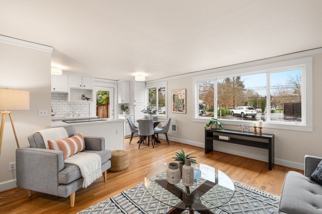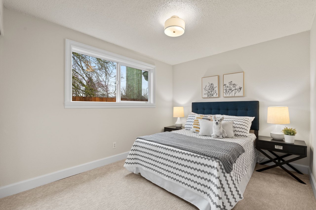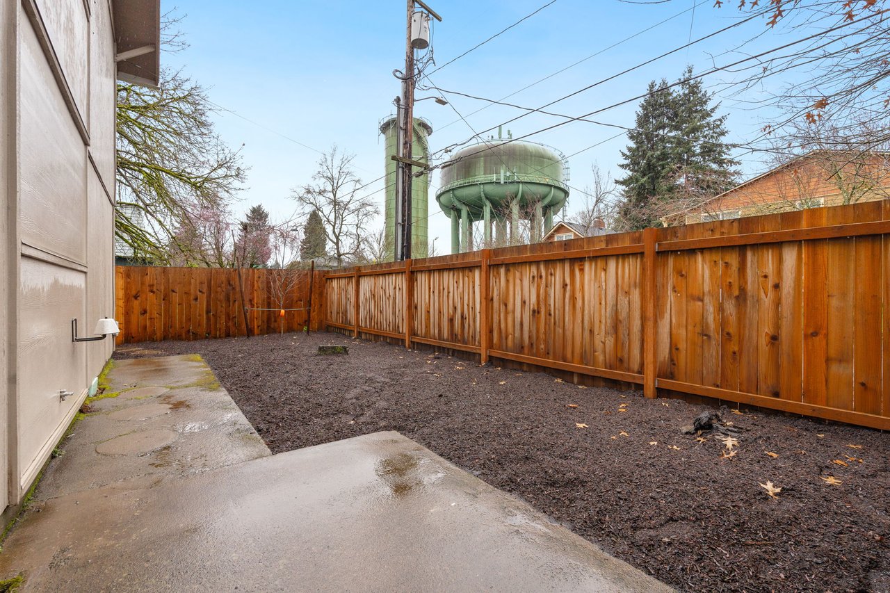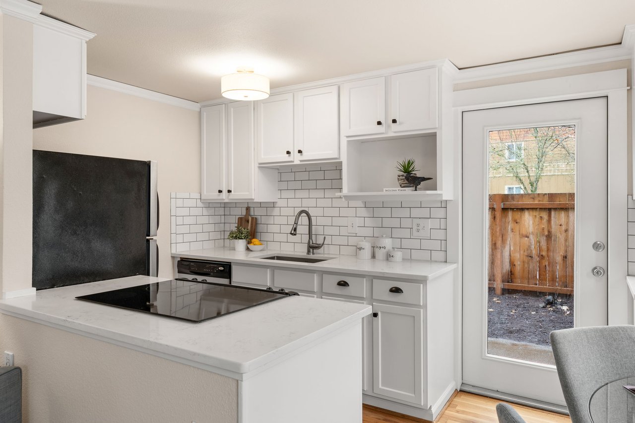 Freshly painted from floor to ceiling, this light filled condo offers comfortable living in Cathedral Park. The open living space features hardwood floors and flows into an updated kitchen with quartz counters, stainless steel appliances, tile backsplash, and freshly painted cabinets. Two well sized bedrooms share a hall bath with tile flooring, while brand new doors and carpet add a crisp finish. Enjoy the rare bonus of an attached fenced yard with patio, perfect for relaxing or letting Fido play. Includes an assigned parking space, storage locker, and in unit washer/dryer hook up for future all-in-one appliance. Walk Score of 91! Just minutes to downtown St. Johns, Cathedral Park, and the University of Portland.