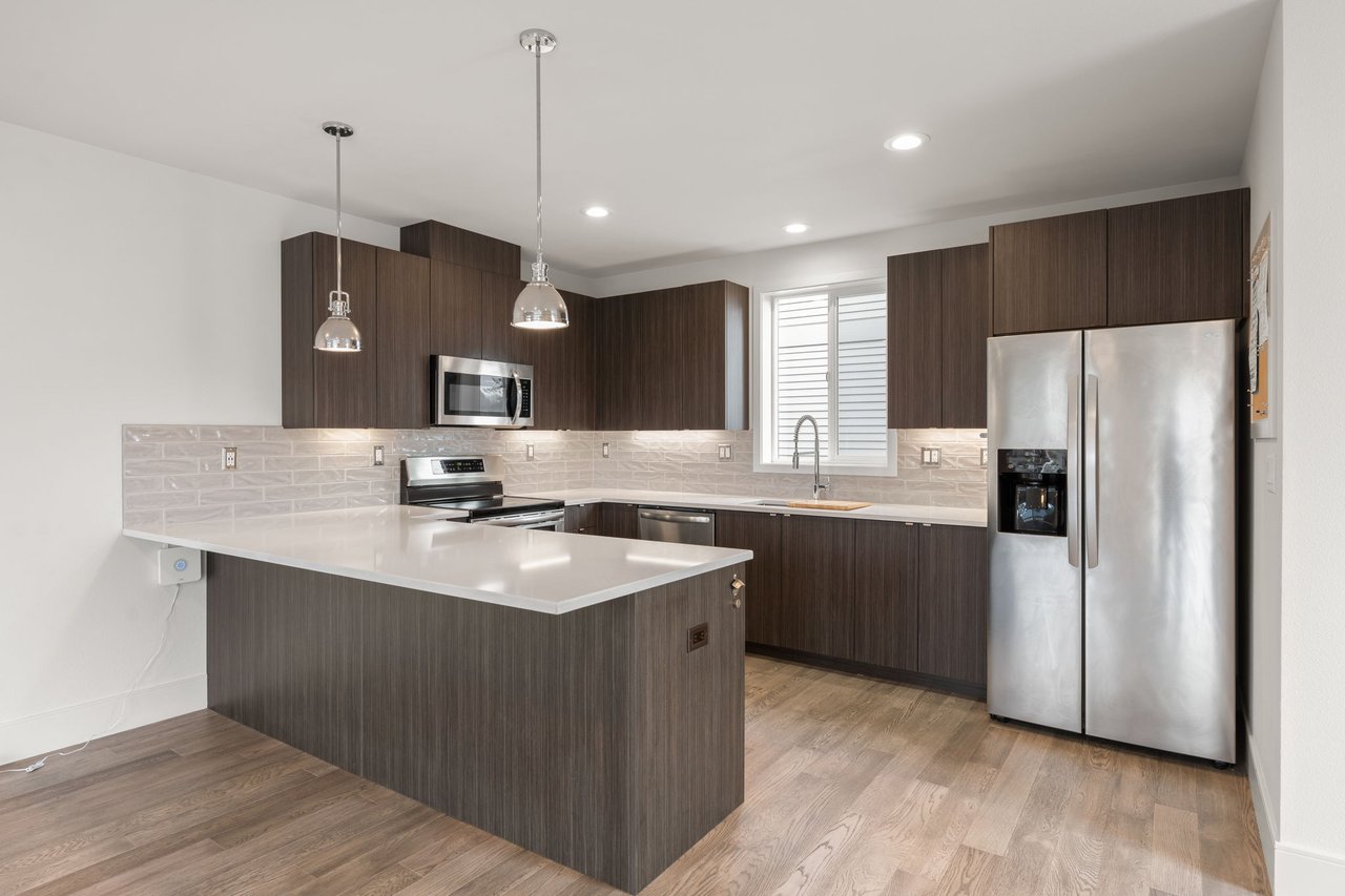 This contemporary corner-lot rowhome combines low maintenance living with modern style and thoughtful energy-efficient design. Energy Star appliances and a Mitsubishi ductless system keep daily comfort simple and economical, while engineered hardwood floors, quartz countertops, and refined tile finishes elevate the overall aesthetic.