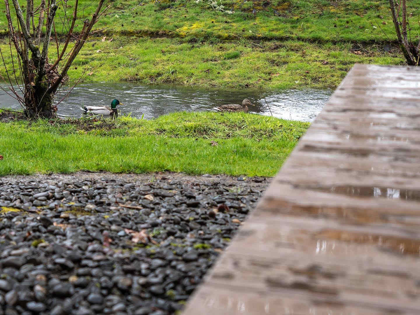 We searched high and low for the right place to hang their shingle over the last year and just weren’t finding it. This opportunity presented itself when one of Brey's longtime clients called to list, and it was straight-up perfect for them! The interior layout is ideal, they have a wonderful courtyard garden, and out the back window, they can enjoy watching their own live version of Oregon Field Guide, with ducks and ducklings playing in the creek, frogs croaking in the evening, and many songbirds taking up residence in the nearby trees.